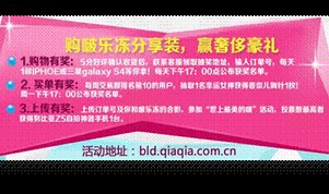 “啵樂凍”抽獎(jiǎng)活動火熱進(jìn)行中: 洽洽“啵樂凍”新品上市已有一段時(shí)間,至今產(chǎn)品很受廣大買家們的青睞,銷量火爆,好評多多?!班穬觥背楠?jiǎng)活動,三重大獎(jiǎng)重磅來襲,奢侈...