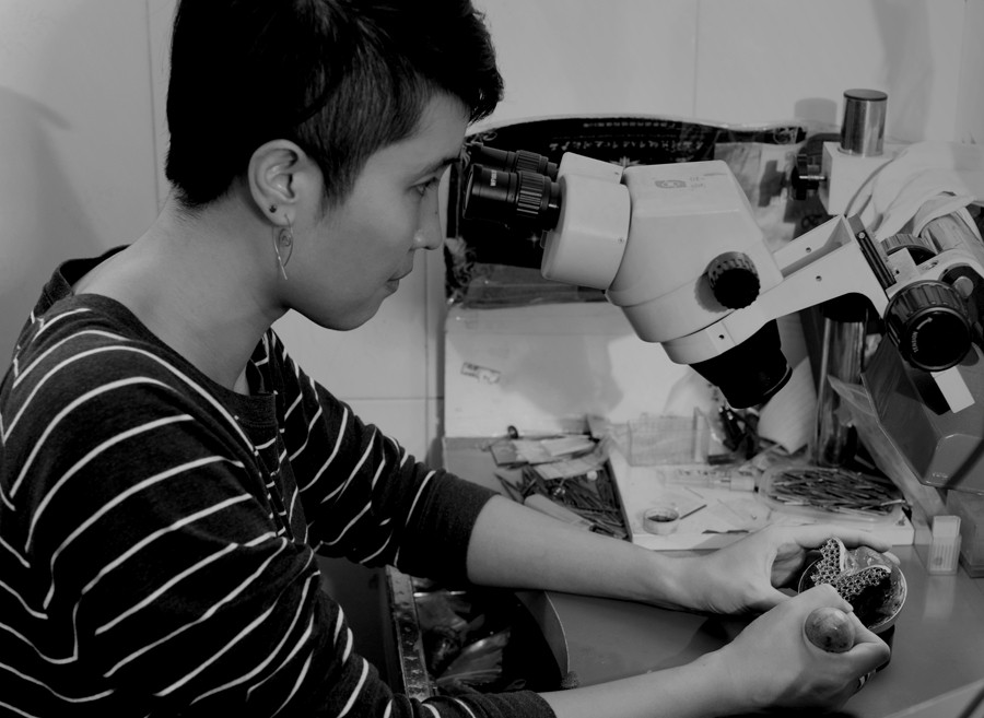 在定制珠寶的過(guò)程中,加籍華裔珠寶設(shè)計(jì)師Phoenix Wei仍然沿襲著法國(guó)拿破侖時(shí)期傳統(tǒng)珠寶工匠才發(fā)明的雕制蠟?zāi)9に嚕恳患髌穱?yán)格遵照設(shè)計(jì)、蠟雕、配石等工序流程,繁復(fù)的鑲嵌工序經(jīng)常要耗費(fèi)幾百個(gè)工時(shí)。