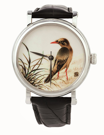 靈動(dòng)的鳥(niǎo)雀形象為表盤(pán)帶來(lái)不一樣的視覺(jué)效果,精雕繪制的表盤(pán)更凸顯腕表的獨(dú)一無(wú)二。